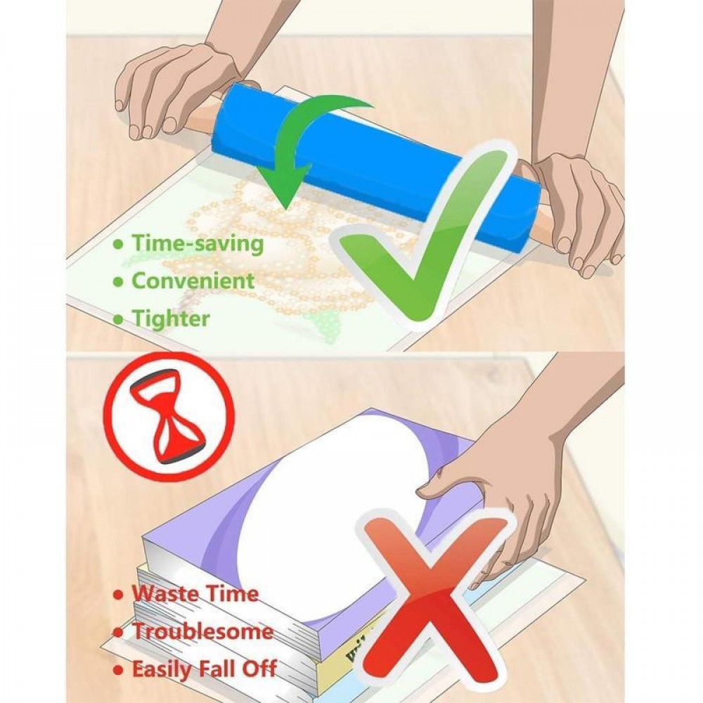 Got your Diamond Painting Kit completed, now pick up your roller tool & evenly press the diamonds. You can purchase double-handed & easy to hold Diamond Painting Roller Tool from our store available in 4 colors. It will make your painting look professional.
