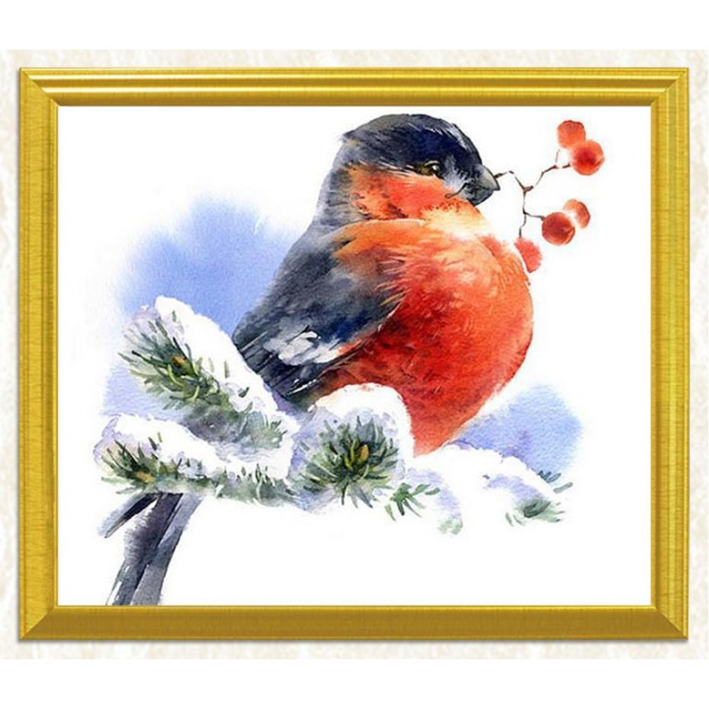 Sweet Bird in Snow Diamond Art Kit